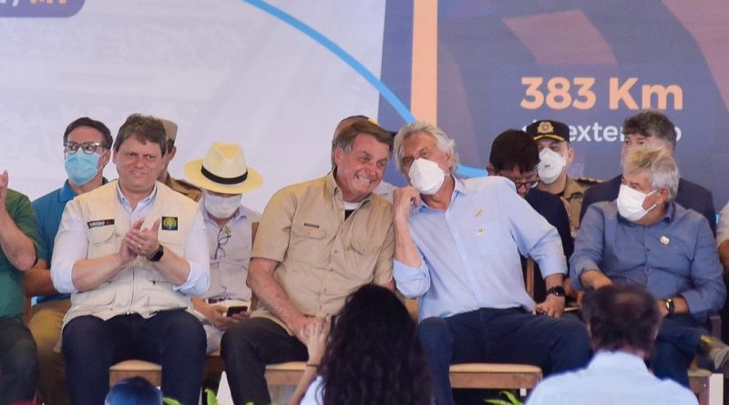 Ao lado de Caiado, Bolsonaro lança obra ferroviária em Mara Rosa