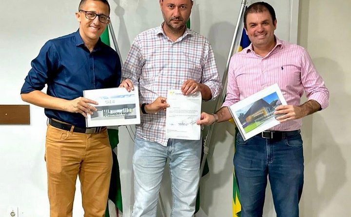 Nesta segunda – feira, 21 de agosto, o Deputado Issy Quinan e Prefeito Samuel Cotrim entregaram ao Presidente da Goinfra, Lucas Vissoto, os projetos arquitetônicos das obras.